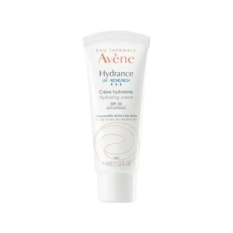 L'AVENE HYDRANCE CRÈME UV RICHE SPF30 40ML est un soin hydratant quotidien spécialement formulé pour les peaux sensibles, sèches à très sèches, et déshydratées, nécessitant à la fois une hydratation intense et une protection solaire. Ce tube de 40 ml offre une double action : elle nourrit et hydrate durablement la peau tout en la protégeant efficacement des rayons UVA et UVB, responsables du vieillissement cutané.