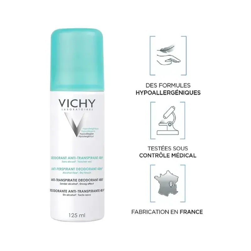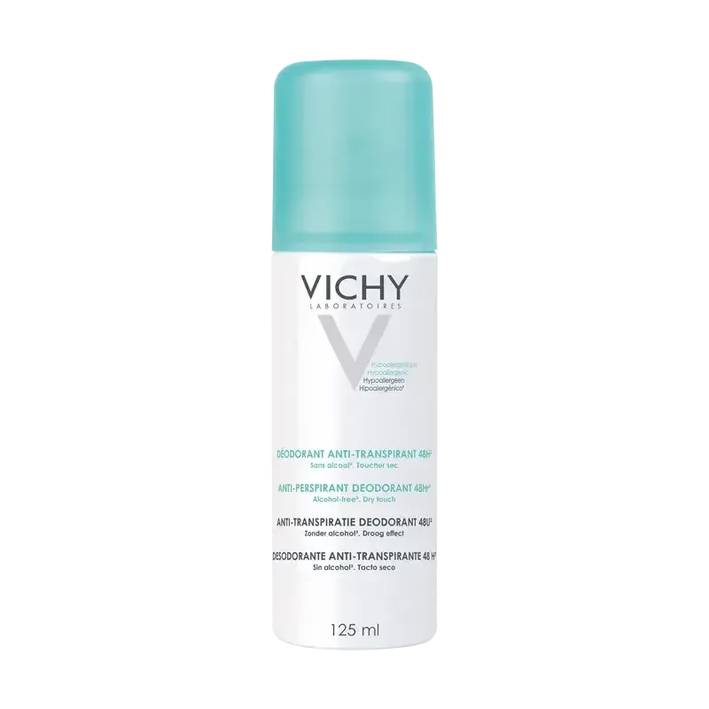 Ce déodorant anti-transpirant en aérosol offre une protection de 48 heures contre la transpiration et les odeurs. Sa formule sans alcool procure un fini sec instantané et une fraîcheur durable tout en respectant les peaux sensibles.