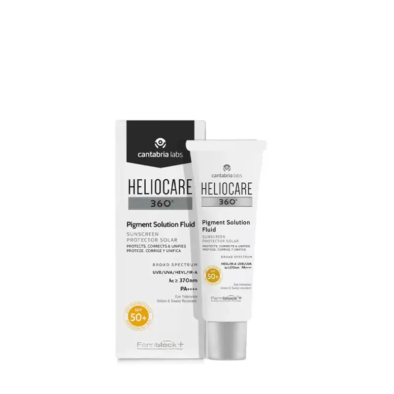 HELIOCARE 360° Pigment Solution Fluid SPF50+ 50ml est un photoprotecteur quotidien ultra-fluide et innovant, spécifiquement formulé pour les peaux sujettes aux taches pigmentaires (mélasma, lentigos, hyperpigmentation post-inflammatoire). Il combine une très haute protection solaire globale avec une action dépigmentante ciblée pour corriger les taches existantes et prévenir l'apparition de nouvelles.