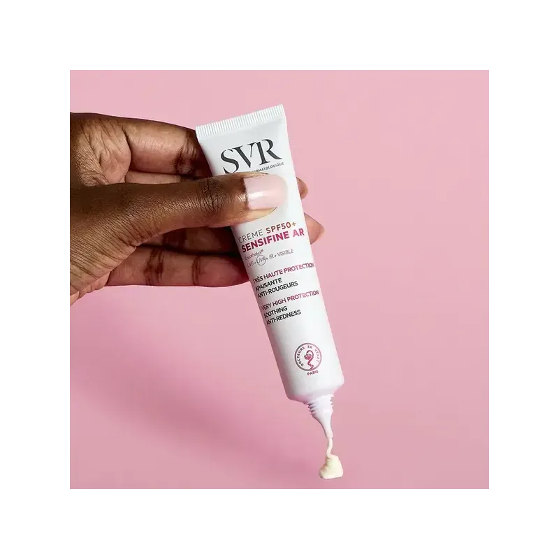 La crème SVR Sensifine AR, avec une protection solaire SPF 50+, convient à tous les types de peau. Elle assure une défense efficace contre les rayons UV tout en protégeant la peau des agressions environnementales.