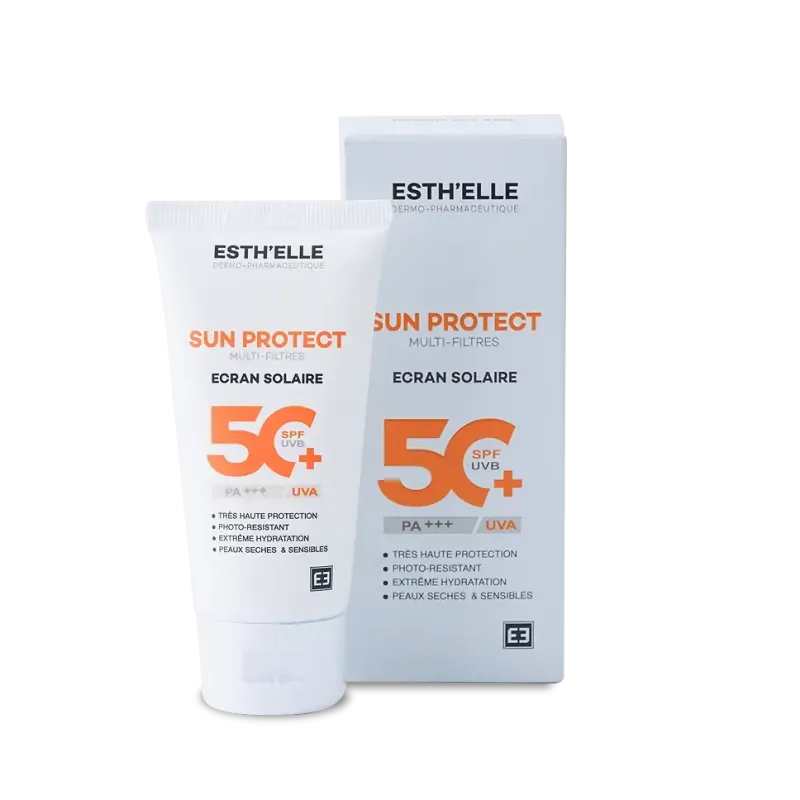 L'ESTHELLE SUN PROTECT INVISIBLE SPF50+ est un soin solaire visage qui offre une très haute protection à large spectre (SPF 50+, PA+++) contre les rayons UVA et UVB, essentiels pour prévenir les coups de soleil, le photo-vieillissement et l'apparition de taches brunes. Ce soin se distingue par sa texture invisible qui ne laisse ni traces blanches, ni sensation grasse ou collante sur la peau. En plus de sa fonction protectrice, sa formule enrichie en actifs hydratants et antioxydants lui confère des propriétés anti-âge, permettant de préserver l'élasticité et la fermeté de la peau. Sa légèreté et son fini sec le rendent agréable à utiliser au quotidien, même sous le maquillage.