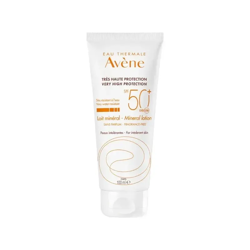 Le Lait Minéral Très Haute Protection SPF50+ Avène Solaire 100ml est une protection 100% minérale pour peaux sensibles, intolérantes ou allergiques aux filtres chimiques et parfums, adaptée aux adultes et enfants. Il protège efficacement des UVB-UVA, est antioxydant, apaisant (Eau Thermale d'Avène) et très résistant à l'eau, pour une haute tolérance sur le visage et le corps.