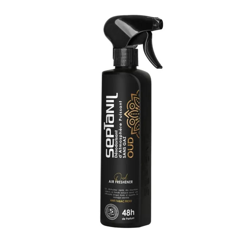 Le SEPTANIL DÉSODORISANT D'ATMOSPHÈRE PUISSANT OUD MALAKY 500ML est un désodorisant liquide en spray sans gaz propulseur, reconnu pour son action puissante de neutralisation des mauvaises odeurs (y compris le tabac froid) et la diffusion d'un parfum oriental et luxueux. La senteur "Oud Malaky" (Oud Royal) est une fragrance de caractère, souvent associée à l'élégance et à l'Orient, laissant une aura luxueuse et fascinante dans tous les espaces. Ce destructeur d'odeurs est doté d'une efficacité prolongée, garantissant que le parfum persiste durablement dans l'air et sur les textiles. Il transforme instantanément l'ambiance, procurant une sensation de confort et de raffinement, et est une alternative écologique aux aérosols traditionnels.