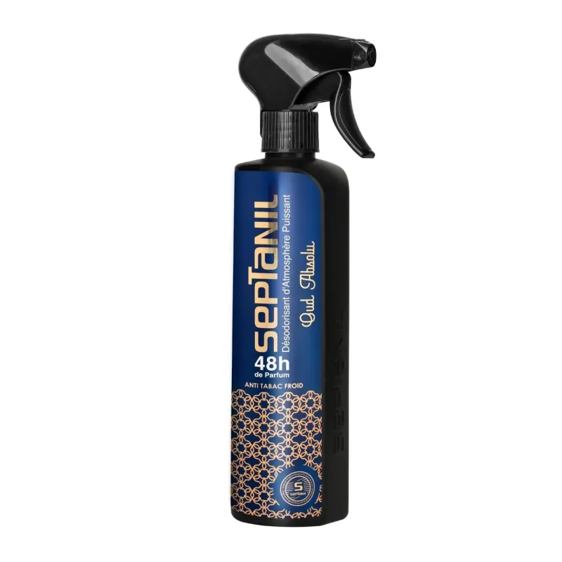 Le SEPTANIL DÉSODORISANT D'ATMOSPHÈRE PUISSANT OUD ABSOLU 500ML est un spray ambiant haut de gamme, conçu à la fois pour être un destructeur d'odeurs efficace et un parfum d'ambiance sophistiqué. Sa formule "puissante" vise l'élimination immédiate des mauvaises odeurs (tabac, cuisine, humidité) et non leur simple masquage. Il diffuse une fragrance luxueuse et intense d'Oud Absolu, une essence orientale précieuse, boisée, ambrée et souvent légèrement cuirée, créant une ambiance de pureté intense et de luxe dans tous les espaces. Ce désodorisant est formulé pour une efficacité longue durée, le parfum persistant sur les surfaces et les textiles. Il est souvent présenté comme étant sans gaz, biodégradable et écologique.