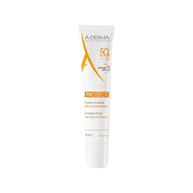 Le A-Derma Protect Fluide Invisible SPF 50+ 40ml est un soin solaire haute tolérance spécialement formulé pour les peaux fragiles, normales à mixtes. Il offre une très haute protection contre les rayons UVA et UVB, tout en protégeant les cellules de la peau des dommages profonds. Sa formule innovante, à la texture fluide et légère, est invisible sur la peau et résiste à l'eau, ce qui en fait un allié parfait pour une protection solaire quotidienne.