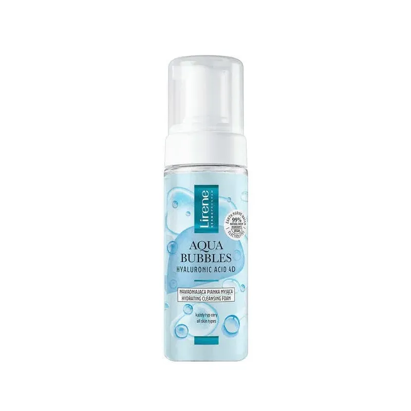 La LIRENE AQUA BUBBLES MOUSSE NETTOYANTE 150ML est une mousse délicate et aérienne, spécialement formulée pour un nettoyage du visage doux mais efficace, tout en offrant une hydratation intense. Appartenant à la gamme Aqua Bubbles, elle est conçue pour éliminer la saleté, l'excès de sébum et les résidus de maquillage sans provoquer la sensation de sécheresse ou de tiraillement souvent associée au nettoyage. Elle hydrate et nourrit la peau de manière immédiate (hydratation visible en 5 secondes) et durable. Sa formule est enrichie en Acide Hyaluronique 4D pour une hydratation à différents niveaux, et en Électrolytes et Eau de Mer pour restaurer l'équilibre cutané et redonner de l'éclat au teint. C'est un produit adapté aux végans, contenant 99% d'ingrédients d'origine naturelle.