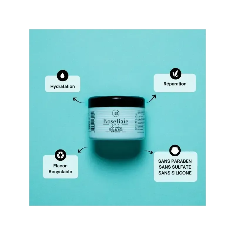 Huile de ricin fortifiante : Reconnue pour ses vertus, l'huile de ricin, riche en acides gras, nourrit en profondeur le cuir chevelu et la fibre capillaire, favorisant la pousse de cheveux plus forts.