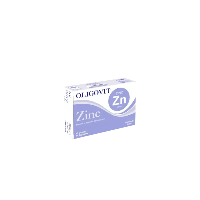 VITAL OLIGOVIT ZINC 25MG 15 GÉLULES est un complément alimentaire conçu pour fournir une dose concentrée de zinc, un oligo-élément essentiel au bon fonctionnement de l'organisme. Le zinc est impliqué dans de nombreuses fonctions biologiques : il contribue au maintien d'une peau, de cheveux et d'ongles normaux, au fonctionnement normal du système immunitaire, et à la protection des cellules contre le stress oxydatif. Ce complément est particulièrement indiqué en cas de carence ou de besoin accru en zinc.