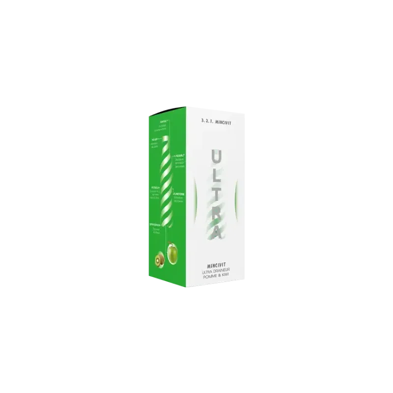 VITAL MINCIVIT ULTRA DRAINEUR POMME & KIWI 250ML est une solution buvable concentrée, conçue pour favoriser le drainage et la détoxification de l'organisme. Ce complément alimentaire est un allié précieux pour les personnes souhaitant affiner leur silhouette, combattre la rétention d'eau et purifier leur corps. Sa formule unique combine des extraits de plantes reconnues pour leurs propriétés drainantes et détoxifiantes, avec le goût frais et agréable de la pomme et du kiwi.