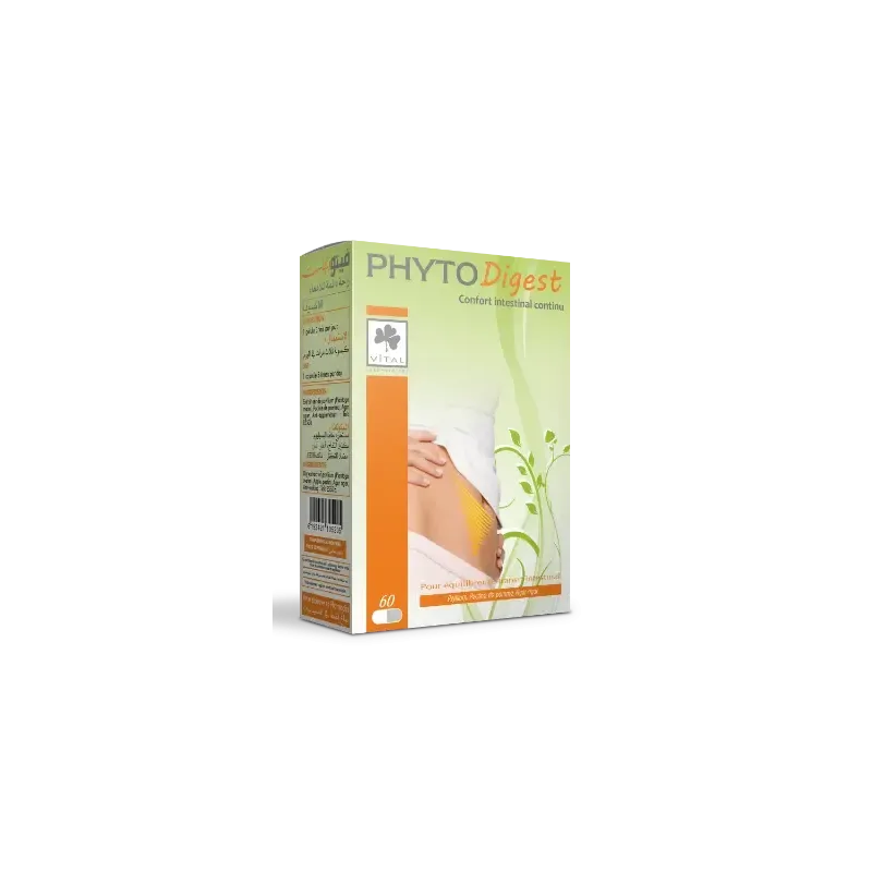 VITAL PHYTODIGEST 60 GÉLULES est un complément alimentaire naturel, spécialement formulé pour améliorer le confort digestif. Sa composition synergique combine des extraits de plantes reconnues pour leurs vertus digestives et apaisantes, ce qui en fait un allié de choix pour les personnes souffrant de ballonnements, de spasmes ou de digestion difficile. Ce produit agit en douceur sur l'ensemble du système digestif pour en rétablir le bon fonctionnement et apporter une sensation de légèreté après les repas.