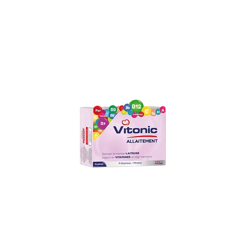 VITAL VITONIC ALLAITEMENT 45 GÉLULES est un complément alimentaire spécifiquement formulé pour soutenir la mère allaitante et son bébé. Durant cette période cruciale, les besoins en vitamines, minéraux et acides gras essentiels sont accrus. Ce produit est un concentré de nutriments qui agissent pour améliorer la qualité et la quantité du lait maternel, tout en aidant la mère à récupérer de la fatigue post-natale. Sa formule complète contribue à la vitalité de la mère et au bon développement du nourrisson.