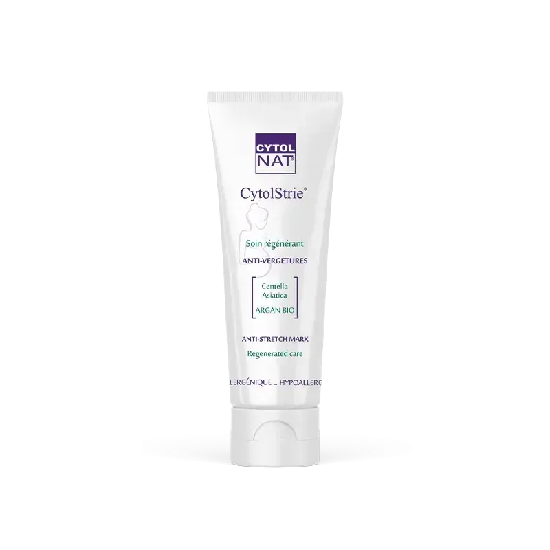 La Crème Anti-Vergetures CYTOLSTRIE Cytol est un soin dermatologique formulé pour prévenir l'apparition des vergetures et réduire l'apparence des vergetures existantes. Sa formule unique agit en stimulant la production de collagène et d'élastine, les deux protéines essentielles à la souplesse et à l'élasticité de la peau. Elle nourrit, hydrate en profondeur et renforce l'épiderme, le rendant plus résistant aux étirements. Idéale pendant la grossesse, la puberté ou les variations de poids, elle aide à maintenir la fermeté de la peau pour prévenir l'apparition de ces marques indésirables.