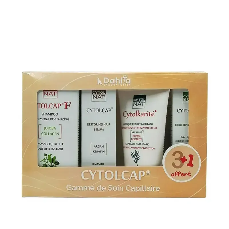 Le Coffret Cytolnat CYTOLCAP est un rituel de soin capillaire complet, spécialement conçu pour les cheveux fragiles, abîmés et cassants. Ce coffret est composé d'une routine en quatre étapes pour nettoyer, fortifier, réparer et nourrir la chevelure de la racine aux pointes. Chaque produit de la gamme agit en synergie pour revitaliser la fibre capillaire et redonner force, souplesse et brillance aux cheveux les plus malmenés. C'est le soin idéal pour une cure intensive qui restaure la santé et la beauté des cheveux.