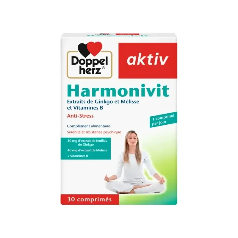 AKTIV HARMONIVIT est un complément alimentaire conçu pour aider à la gestion du stress et favoriser le bien-être mental. Sa formule unique combine des extraits de plantes reconnues pour leurs propriétés apaisantes, comme la Mélisse et la Valériane, avec du Magnésium et des vitamines B. Cette synergie d'actifs agit pour soutenir le système nerveux, réduire la fatigue nerveuse et favoriser la relaxation, sans provoquer de somnolence. Il est idéal pour les périodes de stress, de surmenage, de nervosité ou en cas de difficultés à se détendre.