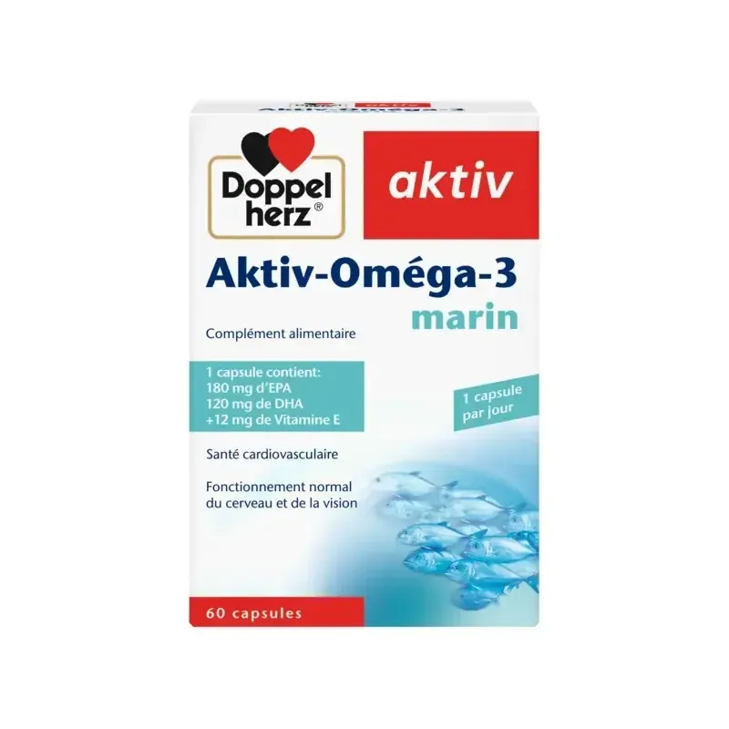 AKTIV OMEGA 3 MARIN est un complément alimentaire sous forme de capsules, formulé pour fournir des acides gras essentiels Oméga-3. Sa formule est riche en acide eicosapentaénoïque (EPA) et en acide docosahexaénoïque (DHA), des nutriments clés pour la santé cardiovasculaire, le cerveau et la vision. Les Oméga-3 marins sont reconnus pour leurs multiples bienfaits sur l'organisme, notamment leur capacité à réguler la fonction cardiaque, à maintenir une fonction cérébrale normale et à soutenir une bonne vision. Ce complément est idéal pour les personnes ayant une alimentation pauvre en poissons gras ou souhaitant renforcer leur apport quotidien en Oméga-3.