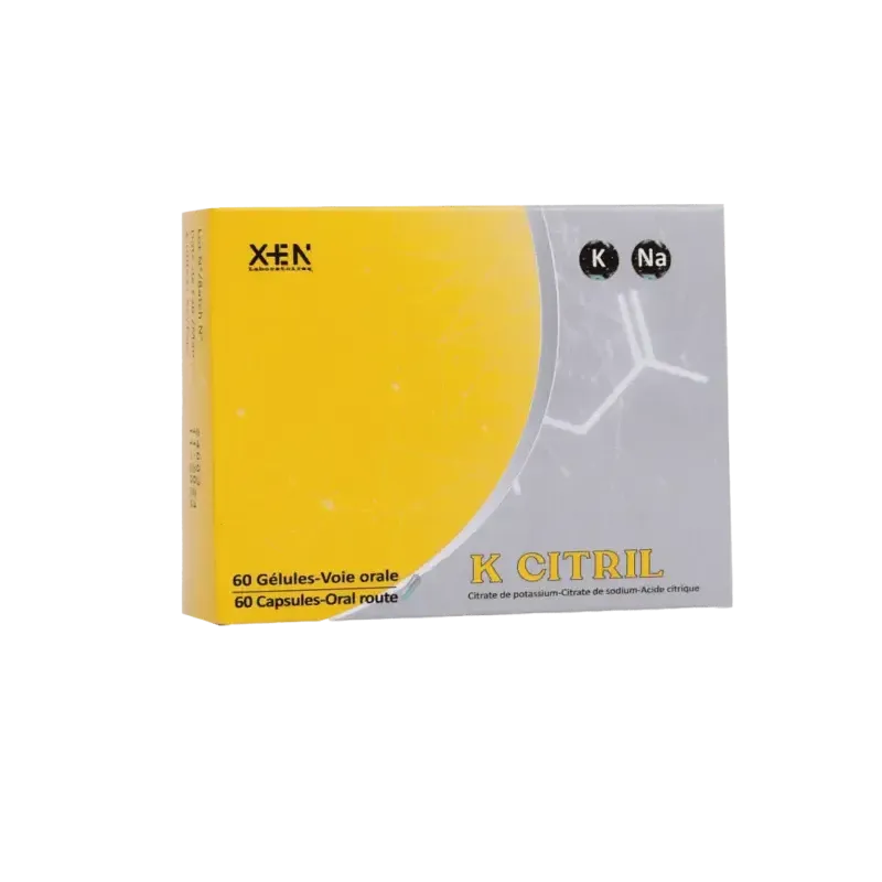 XEN K CITRIL est un complément alimentaire conçu pour aider à la prévention des calculs rénaux d'origine calcique. Sa formule unique contient du citrate de potassium et de la vitamine K. Le citrate de potassium aide à augmenter le pH urinaire et la concentration en citrate, ce qui rend le milieu moins favorable à la formation des cristaux d'oxalate de calcium. La vitamine K contribue à une coagulation sanguine normale et au maintien d'une ossature normale. Ce complément est idéal pour les personnes ayant des antécédents de calculs rénaux ou celles qui cherchent à maintenir l'équilibre de leur système urinaire.