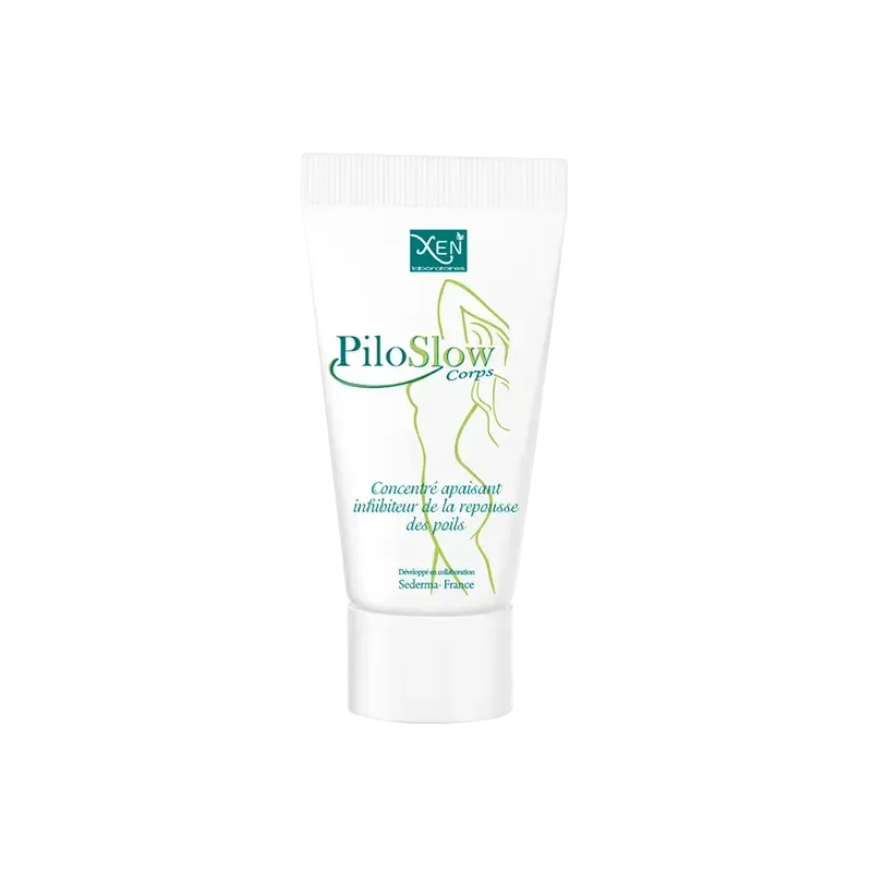 XEN PILO SLOW CORPS est un soin corporel post-épilation conçu pour hydrater la peau tout en ralentissant la repousse des poils. Sa formule innovante contient un complexe d'agents inhibiteurs qui agissent directement sur le follicule pileux après le rasage, l'épilation à la cire ou tout autre type d'épilation. En application régulière, ce soin aide à réduire la densité des poils, les rendant plus fins et plus clairs. Sa texture légère pénètre rapidement, laissant la peau douce, apaisée et parfaitement hydratée. Il est idéal pour prolonger l'intervalle entre deux épilations et garder une peau lisse plus longtemps.