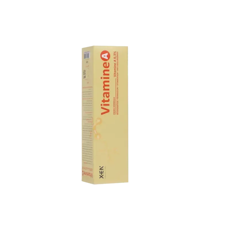 XEN VITAMINE A CRÈME DERMIQUE 0.3% est un soin dermatologique conçu pour les peaux présentant des troubles de la kératinisation, des ridules et une tendance à l'acné. Sa formule est riche en vitamine A (rétinol), un actif puissant reconnu pour ses propriétés de renouvellement cellulaire. La vitamine A agit en stimulant la production de collagène et d'élastine, ce qui améliore la texture de la peau et réduit l'apparence des ridules. Elle régule également la production de sébum et favorise l'élimination des cellules mortes, ce qui permet de lutter contre les imperfections et de désobstruer les pores.