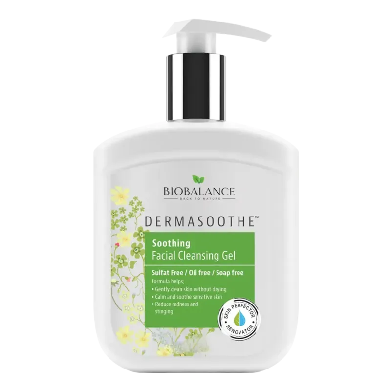 BIOBALANCE DERMASOOTHE est un gel nettoyant pour le visage conçu pour les peaux sensibles, réactives, et sujettes aux rougeurs. Sa formule sans savon nettoie en douceur, sans agresser ni dessécher, tout en ciblant les irritations pour un confort durable.