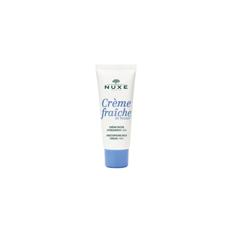 NUXE CRÈME FRAÎCHE DE BEAUTÉ CRÈME RICHE HYDRATANTE 48H est un soin du visage conçu pour les peaux sèches à très sèches. Sa formule riche et onctueuse hydrate intensément la peau pendant 48 heures, l'apaise et la protège de la pollution pour un confort durable.