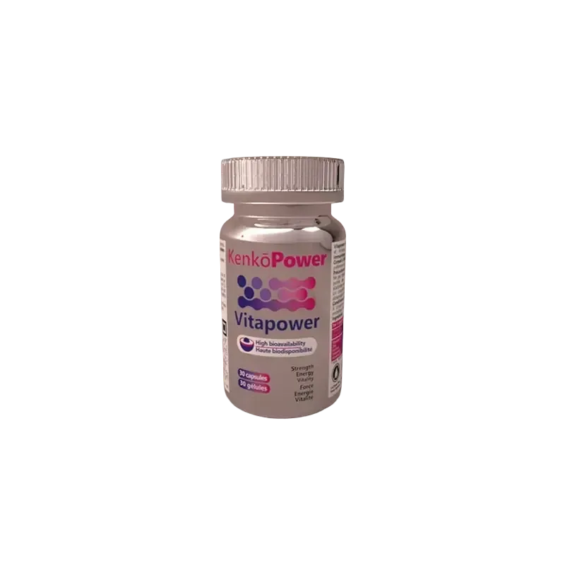 KENKO POWER VITAPOWER est un complément alimentaire multivitaminé conçu pour lutter contre la fatigue et soutenir le bien-être général. Sa formule complète combine des vitamines et des minéraux essentiels pour combler les carences et booster votre vitalité.