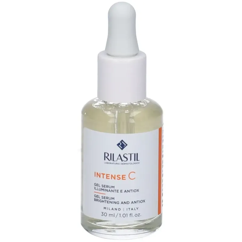 Le sérum RILASTIL INTENSE C est un soin visage anti-âge et illuminateur, conçu pour revitaliser les peaux ternes et fatiguées. Sa formule, ultra-concentrée en vitamine C stabilisée et en extrait de myrtille, agit en synergie pour un effet antioxydant puissant. La vitamine C stabilisée, un actif éclaircissant et antioxydant, protège la peau du stress oxydatif causé par les radicaux libres et la pollution, tout en stimulant la production de collagène. L'extrait de myrtille, riche en polyphénols, renforce l'action de la vitamine C et améliore la microcirculation. Sa texture gel-sérum, légère et non grasse, pénètre instantanément, offrant un confort immédiat et laissant la peau douce, apaisée et hydratée. Utilisé au quotidien, il réduit les signes de fatigue, lisse le grain de peau et redonne de l'éclat au teint.