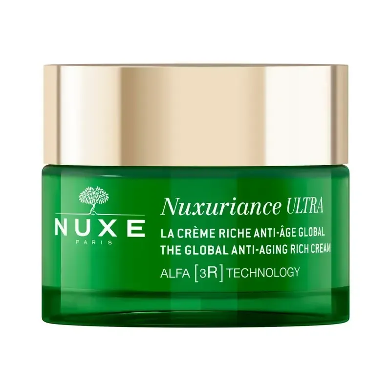 La Crème Riche Redensifiante Anti-âge Global Nuxuriance Ultra de Nuxe est un soin de jour conçu pour les peaux sèches qui souhaitent lutter contre les signes du vieillissement. Cette crème onctueuse est formulée avec des ingrédients d'origine naturelle pour une efficacité ciblée sur les rides, la fermeté et l'éclat de la peau.