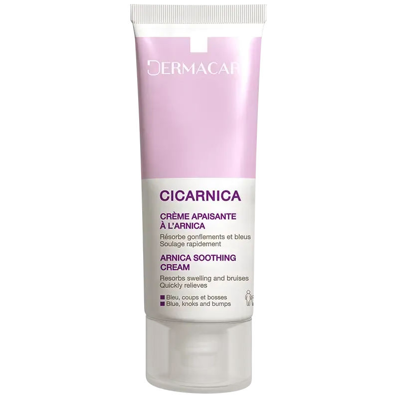 La crème apaisante Cicarnica de Dermacare est un soin spécifiquement formulé pour le visage et le corps, conçu pour apaiser et réparer les peaux fragilisées, irritées ou ayant subi des chocs légers. Sa formule unique, hautement tolérée, combine les propriétés apaisantes et anti-inflammatoires de l'Arnica Montana et du Souci (Calendula), avec des actifs qui favorisent la réparation cutanée. Elle est idéale pour aider la peau à se remettre rapidement des coups, des hématomes (bleus) ou des rougeurs localisées. Sa texture onctueuse pénètre facilement sans laisser de film gras. C'est un soin essentiel pour toute la famille, agissant comme un véritable baume de premiers secours.