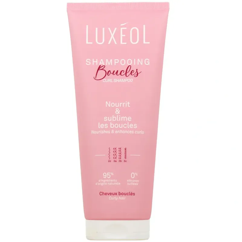 Shampoing Luxéol de 200 ml, composé à 95 % d'ingrédients naturels, qui nettoie en douceur, hydrate et nourrit les cheveux bouclés (2C à 3C). Il favorise des boucles souples, rebondies et pleines de vitalité, tout en ayant une action anti-frisottis.
