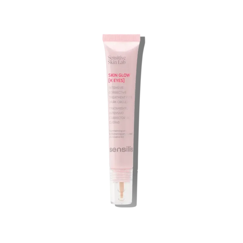 La SENSILIS Skin Glow [K Eyes] est un traitement correcteur intensif sous forme d'émulsion, spécifiquement formulé pour lutter contre les signes de fatigue et de vieillissement prématuré du contour des yeux, notamment les cernes et le teint terne. Sa formule associe une action traitante en profondeur à un effet embellisseur immédiat grâce à des pigments beiges éclaircissants et nacrés, qui corrigent instantanément la couleur des cernes et augmentent la luminosité (jusqu'à +31% d'éclat immédiat). Enrichi d'un cocktail multivitaminé, il agit sur les cernes vasculaires (bleutés/violacés) et les cernes pigmentaires (marron), tout en apportant une hydratation durable et une action anti-âge. Le produit a une action drainante et décongestionnante pour revitaliser le contour de l'œil. Il est hypoallergénique, non comédogène et testé ophtalmologiquement et dermatologiquement sur peaux sensibles.