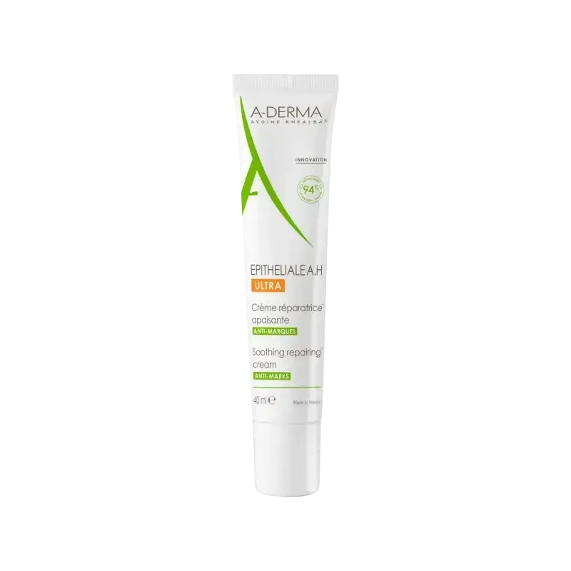 La Crème Ultra-Réparatrice EPITHELIALE A.H ULTRA 40ml d'A-DERMA est un soin dermatologique conçu pour accélérer la réparation cutanée des peaux fragilisées et irritées suite à des actes dermatologiques superficiels (peeling, laser) ou à des atteintes épidermiques (éraflures, brûlures légères). Sa formule innovante, à la fois apaisante et réparatrice, favorise une cicatrisation de qualité et contribue à réduire l'apparence des marques cicatricielles. Elle convient à toute la famille, du nourrisson à l'adulte.