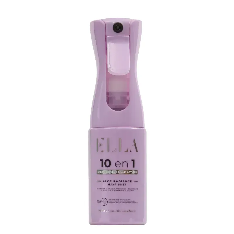 Le ELLA Aloe Radiance Hair Mist est un spray capillaire sans rinçage Multi-Actions 10 en 1 spécialement formulé pour répondre aux besoins des cheveux colorés et méchés. Ce soin expert agit comme un bouclier protecteur tout en étant un puissant hydratant. Sa formule, enrichie en Aloe Vera et en Inula, a été conçue pour préserver et prolonger la couleur, tout en ravivant l'éclat de la chevelure. Il offre une protection complète contre les agressions extérieures telles que les rayons UV, le sel, le chlore et la chaleur des appareils de coiffage. En plus de ses propriétés protectrices, il nourrit profondément, répare la fibre, facilite le démêlage, discipline les frisottis et laisse les cheveux incroyablement doux, souples, forts et délicatement parfumés.
