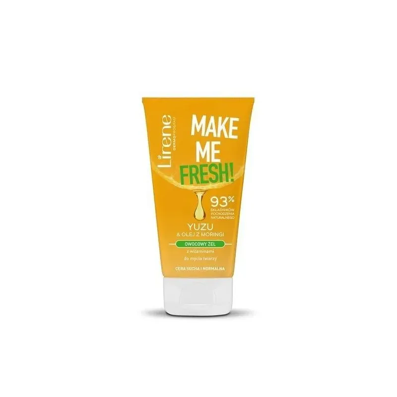 LIRENE MAKE ME FRESH GEL NETTOYANT A L'HUILE DE MORINGA 150ML est un gel nettoyant fruité pour le visage, conçu pour nettoyer la peau en profondeur tout en lui apportant hydratation et éclat. Faisant partie de la gamme Make Me Fresh, il se distingue par sa formule riche en ingrédients d'origine naturelle (93%) et sa composition vegan. Il combine la puissance vitaminée de l'Extrait de Yuzu et les vertus nutritives de l'Huile de Moringa. Le gel élimine efficacement les impuretés et les résidus de maquillage, tout en hydratant et en régénérant la peau, la laissant lisse, fraîche et éclatante de santé. Il est formulé pour respecter l'équilibre de la peau.