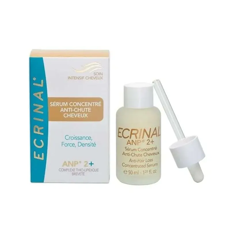 Le SÉRUM CONCENTRÉ ANTI-CHUTE CHEVEUX ECRINAL est un traitement intensif sans rinçage, présenté en flacon de cinquante millilitres avec pipette applicatrice. Ce sérum représente la formule la plus riche de la gamme en ANP® 2+ (Activateur Naturel de Phanère), l'actif breveté exclusif des Laboratoires ASEPTA. Il est conçu pour traiter les chutes de cheveux importantes, la perte de densité sévère et les cheveux faibles ou clairsemés. Agissant directement au cœur du follicule pileux, ce soin puissant vise à freiner significativement la chute et à stimuler la repousse de cheveux plus solides et plus vigoureux. L'efficacité du sérum est cliniquement prouvée, avec des premiers résultats visibles souvent constatés dès 21 jours et une action renforcée après deux mois de cure. Il revitalise le bulbe, améliore la microcirculation du cuir chevelu et renforce la structure du cheveu.