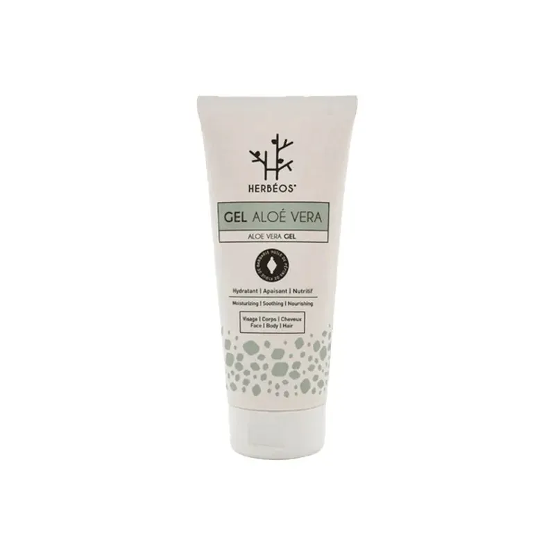 description detaillee Ce gel d'Aloe Vera d'HERBÉOS est un soin complet multi-usages, formulé à partir d'Aloe Vera (reconnu pour ses propriétés hydratantes, apaisantes et réparatrices), enrichi de l'Huile précieuse de Pépins de Figue de Barbarie (l'une des huiles les plus riches en vitamine E et en antioxydants, réputée pour ses vertus anti-âge et régénérantes) et de Collagène Marin (un actif hydratant et tenseur). Ce mariage d'actifs puissants permet d'offrir à la peau une hydratation en profondeur, tout en combattant les signes de l'âge et en apaisant les irritations. Sa texture légère et non grasse pénètre rapidement, laissant la peau hydratée, nourrie et raffermie.