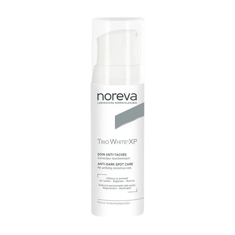Le NOREVA TRIO WHITE XP SOIN ANTI TACHES 30ML est un soin de jour éclaircissant et unifiant intensif, destiné à corriger et à prévenir l'apparition des taches pigmentaires (taches solaires, de vieillissement, mélasma, marques post-acnéiques). Ce soin cible efficacement l'hyperpigmentation en agissant sur toutes les étapes de la mélanogénèse (le processus de production de mélanine). Il utilise un complexe d'actifs de nouvelle génération, notamment des peptides biomimétiques, pour réduire la pigmentation à la source et accélérer le renouvellement cellulaire. Appliquée quotidiennement, cette émulsion légère et confortable contribue à illuminer et unifier le teint, tout en apportant une hydratation essentielle.