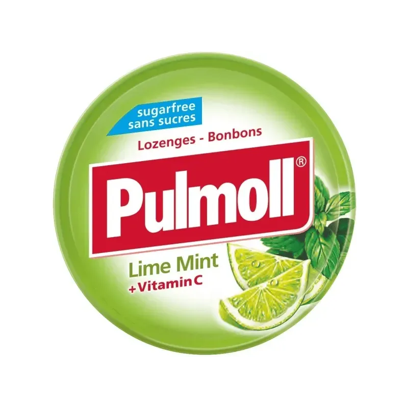 Les pastilles Pulmoll Lime Menthe et Vitamine C sont des bonbons à sucer sans sucre, au goût rafraîchissant de citron vert et de menthe, conçus pour le bien-être de la gorge et pour le soutien du système immunitaire grâce à la vitamine C.