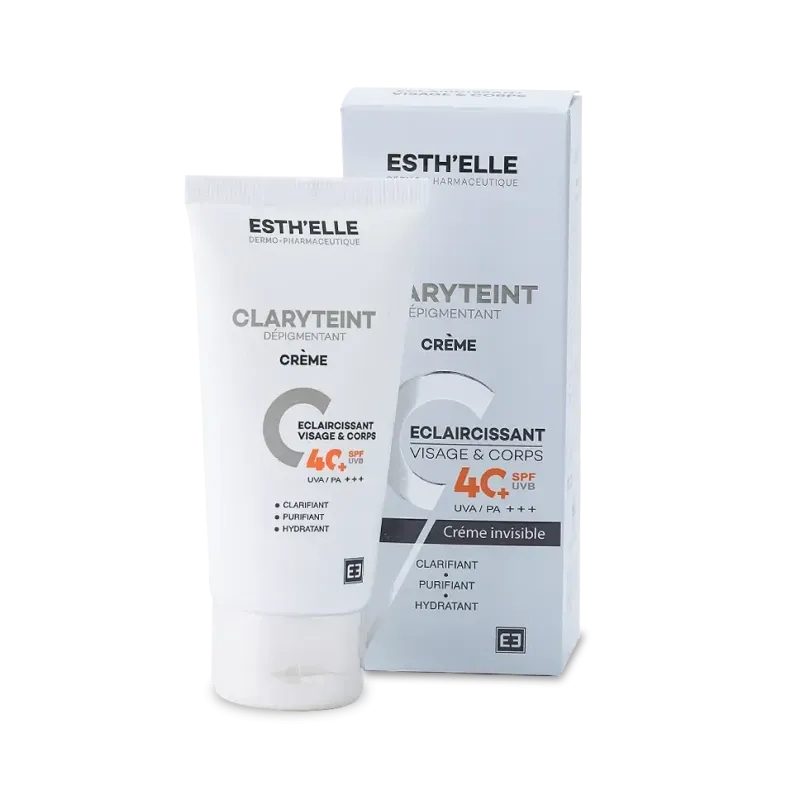 L'ESTHELLE ECRAN CLARYTEINT INVISIBLE 50GR est une crème solaire pour le visage qui combine une très haute protection solaire (souvent SPF 50+ ou 40+) avec une action dépigmentante et éclaircissante. Contrairement à sa version teintée, cet écran est invisible sur la peau, le rendant idéal pour ceux qui recherchent une protection maximale sans modification de la couleur naturelle de leur teint. Il est spécialement conçu pour les peaux présentant des taches brunes, car il protège efficacement contre les UVA et UVB, les principaux responsables de l'apparition et de l'aggravation des hyperpigmentations. Sa formule douce, légère et non grasse, enrichie en actifs éclaircissants, contribue à unifier le teint, à atténuer les taches existantes et à prévenir l'apparition de nouvelles, tout en assurant l'hydratation et la régénération cellulaire. Il pénètre rapidement et sert d'excellente base de maquillage.