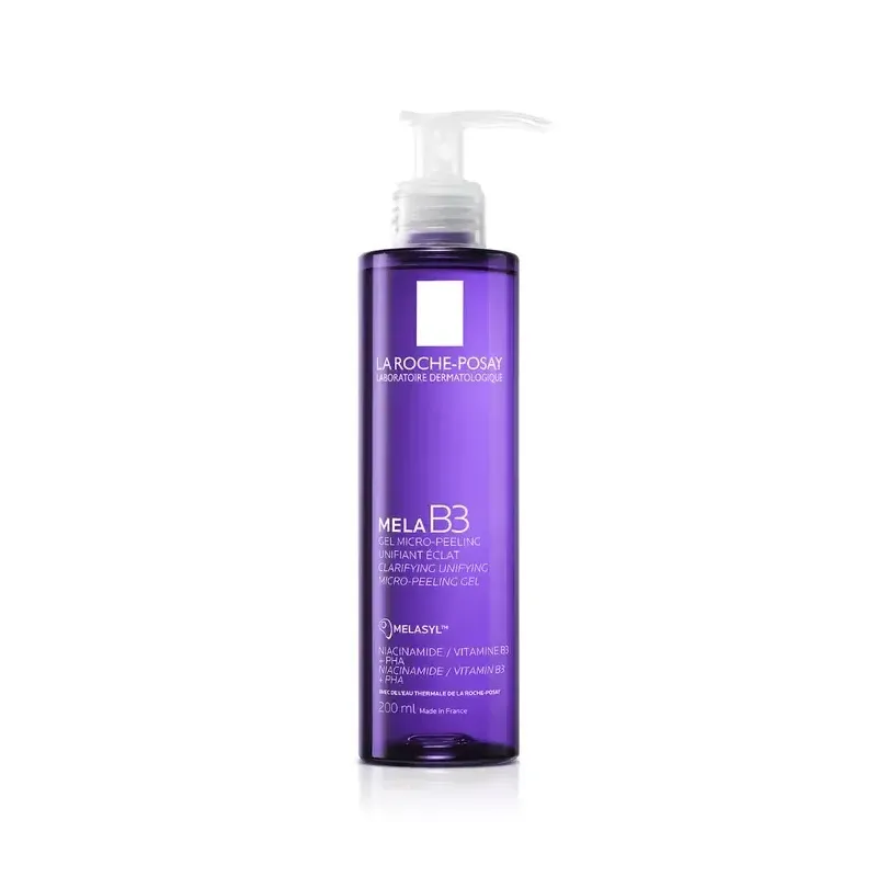La Roche-Posay Mela B3 Gel Micro-Peeling Unifiant Éclat (200 ml) est un nettoyant visage et corps, formulé pour corriger et prévenir les taches brunes tout en affinant le grain de peau et en révélant l'éclat du teint. Ce gel intègre une action micro-peeling douce, idéale pour les peaux sujettes aux irrégularités pigmentaires et aux marques post-inflammatoires, même sensibles.
