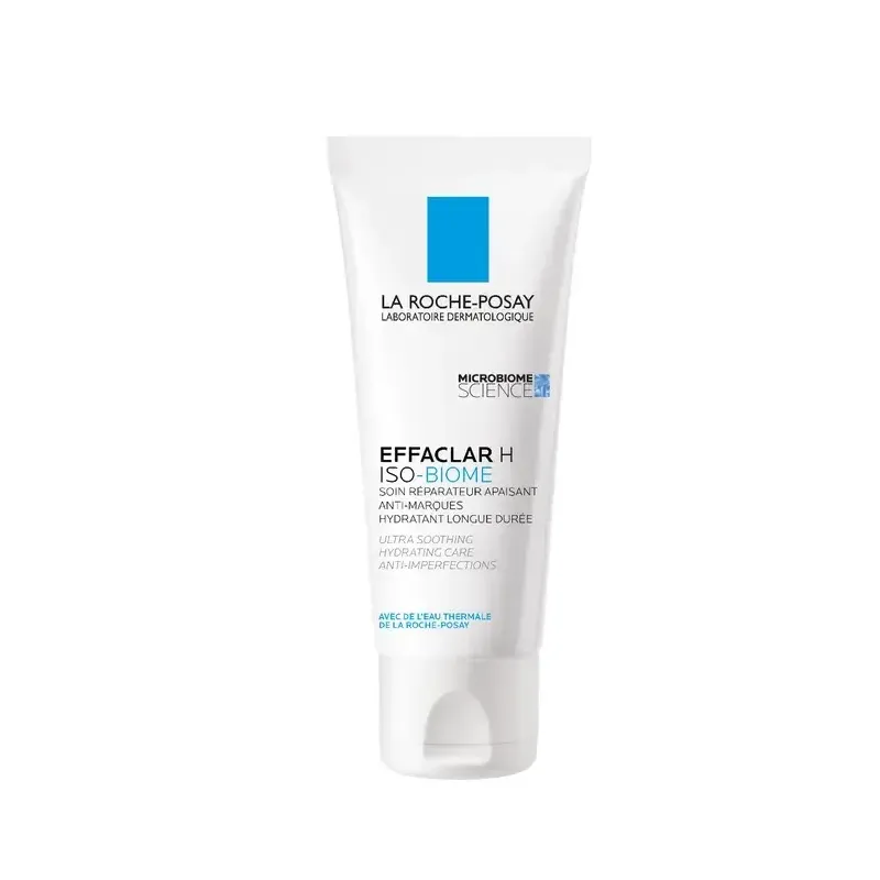 La Roche-Posay Effaclar H Iso-Biome Soin Réparateur (40 ml) est une crème hydratante et apaisante spécifiquement formulée pour les peaux grasses et à tendance acnéique qui sont fragilisées et desséchées par des traitements desséchants (comme les traitements oraux anti-acné ou les traitements topiques intensifs). Ce soin aide à restaurer le confort cutané, à renforcer la barrière cutanée et à rééquilibrer le microbiome, tout en limitant les imperfections.